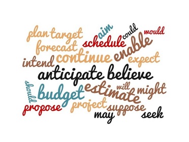 Risks, failures and other difficulties are often missing or at least relativised. Sometimes it looks like the real focus is not on actual results or accurate forecasts but on corporate image using many different words such as: aim, anticipate, believe, budget, could, continue, enable, estimate, expect, forecast, intend, may, might, plan, propose, project, schedule, seek, should, suppose, target, will and would.